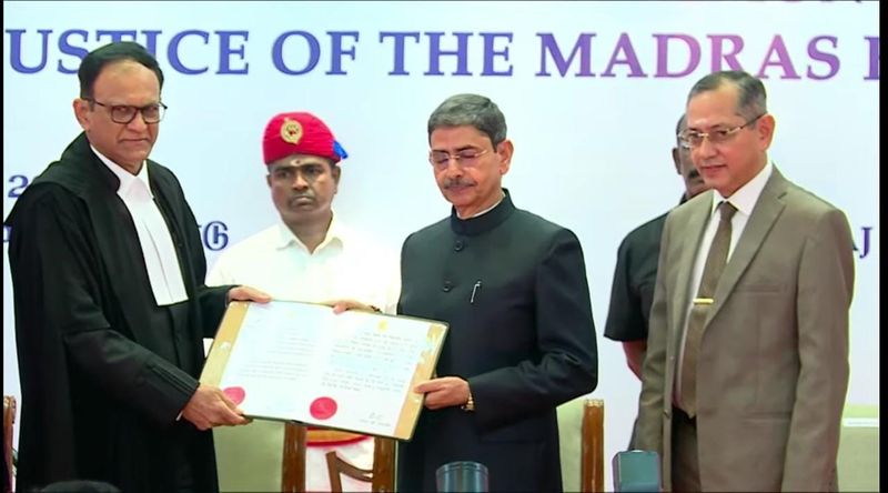 அதிமுகவில் ஒற்றை தலைமை மோதல் காரணமாக எடப்பாடி பழனிசாமி, ஓ.பன்னீர் செல்வத்திற்கு இடையே பிளவு ஏற்பட்டுள்ளது. இதனையடுத்து நடைபெற்ற பொதுக்குழு கூட்டத்தில் எடப்பாடி பழனிசாமியை பொதுச்செயலாளராக ஆக்கி தீர்மானம் நிறைவேற்றப்பட்டது. அதிமுக சட்ட விதிகளுக்கு எதிராக செயல்பட்டதாக கூறி அதிமுகவில் இருந்து ஓபிஎஸ் நீக்கப்பட்டார். இதனையடுத்து ஓபிஎஸ் ஆதரவாளர்கள் ஒருவர் பின் ஒருவராக எடப்பாடி அணிக்கு தாவி வருகின்றனர். இதன் கரணமாக ஓபிஎஸ், டிடிவியோடு இணைந்து செயல்பட்டு வருகிறார். இந்தநிலையில் சென்னை உயர்நீதிமன்ற தலைமை நீதிபதியாக சஞ்சய் விஜய்குமார் கங்காபூர்வாலா பதவியேற்பு நிகழ்ச்சி ஆளுநர் மாளிகையில் நடைபெற்றது. அவருக்கு ஆளுநர் ஆர்.என் ரவி பதவி பிரமானம் செய்து வைத்தார்.