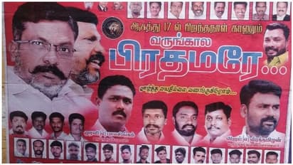 அந்த வகையில் கரூர் நகரம் அரிக்காரம்பாளையத்தை சேர்ந்த விடுதலை சிறுத்தைகள் கட்சியினர் அச்சிட்டு ஒட்டப்பட்டுள்ள போஸ்டர்கள் பரபரப்பை ஏற்படுத்தி உள்ளது. அந்த போஸ்டரில் திருமாவளவனை குறிக்கும் வகையில் வருங்கால பிரதமரே என அச்சிட்டு ஒட்டியுள்ளனர். இந்த போஸ்டர் சமூகவலைதளங்களில் பரவலாக பகிரப்பட்டு வருகிறது.