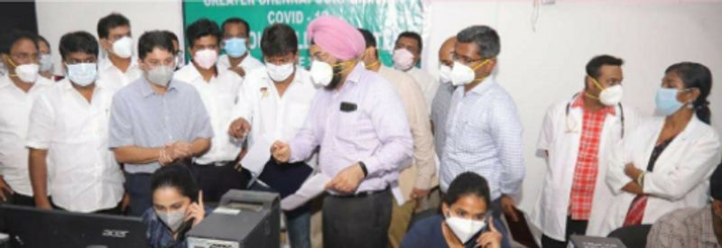சென்னை வள்ளுவர் கோட்டத்தில் அமைக்கப்பட்டுள்ள வீட்டில் தனிமைப்படுத்தப்பட்டுள்ள நபர்களுக்கு பயிற்சி பெற்ற மருத்துவர்கள் ஆலோசனை வழங்கும் கட்டளை மையத்தை சென்னை பெருநகர மாநகரட்சி ஆணையர் ககன்தீப் சிங் பார்வையிட்ட ஆய்வு செய்தார். ஆய்வின்போது சேப்பாக்கம் திருவல்லிக்கேணி சட்டமன்ற உறுப்பினர் உதயநிதி ஸ்டாலின் ஆயிரம் விளக்கு தொகுதி சட்டமன்ற உறுப்பினர் எழிலன் மத்திய சென்னை நாடாளுமன்ற உறுப்பினர் தயாநிதி மாறன் உள்ளிட்ட அதிகாரிகள் இருந்தனர்.