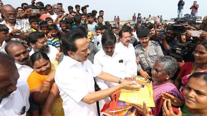 கஜா புயலால் பாதித்த பகுதிகளை தி.மு.க தலைவர் மு.க.ஸ்டாலின் நேரில் பார்வையிட்டு வருகிறார். முதலாவதாக தரங்கம்பாடி கடற்கரை பகுதிகளில் பொதுமக்களை நேரில் சந்தித்து நிவாரண பொருட்களை வழங்கினார்.