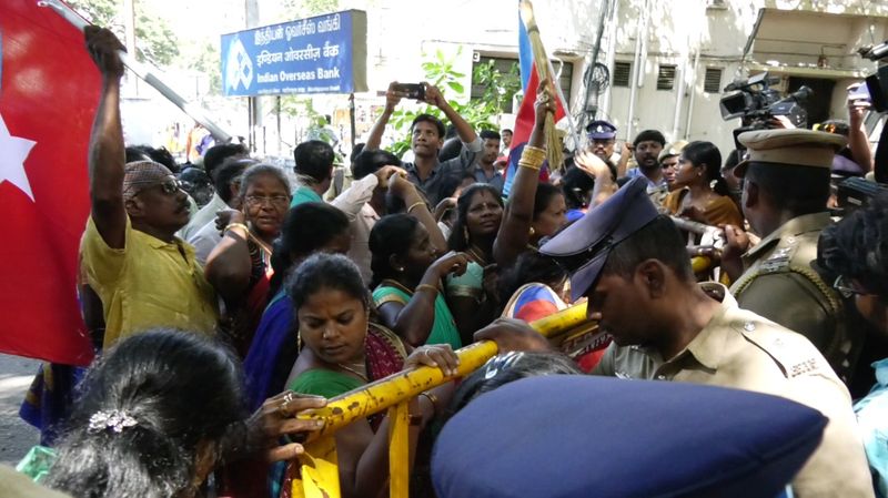 நடிகை காயத்ரி ரகுராம் தனது டிவிட்டர் பக்கத்தில் விடுதலை சிறுத்தைகள் கட்சி தலைவர் திருமாவளவனை பற்றி அவதூறாக பதிவிட்டு, அதற்கு எதிர்ப்பு வந்த பின்பு அந்த பதிவை நீக்கியதாக கூறப்படுகிறது. காயத்ரி ரகுராமைக் கண்டித்து சென்னை மகாலிங்கபுரத்தில் இருக்கும் காயத்ரி ரகுராமின் வீட்டின் முன்பு பெண்கள் உட்பட 50க்கும் மேற்பட்ட விடுதலை சிறுத்தைகள் கட்சியினர் முற்றுகை போராட்டத்தில் ஈடுபட்டனர். அப்போது பெண்கள் சிலர் வீட்டிற்குள் நுழைய முயற்சித்ததால் பரபரப்பு ஏற்பட்டது. இதனையடுத்து காவல்துறையினர் அவர்களை கலைந்து செல்ல கூறியதால், போலீசாருக்கும் போராட்டத்தில் ஈடுபட்டவர்களுக்கும் இடையே தள்ளுமுள்ளு ஏற்பட்டது. பின்னர் அவர்களை போலீசார் கைது செய்தனர்.