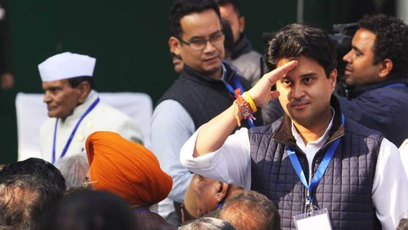 மாதவராவ் சிந்தியா 2001-ம் ஆண்டு விமான விபத்தில் திடீர் மரணமடைந்தார். அதன் பின்னர் தந்தை எம்.பி.யாக இருந்த மக்களவைத் தொகுதியான குணாவில் 2002-ம் ஆண்டு நடைபெற்ற இடைத்தேர்தலில் போட்டியிட்டு முதன்முதலாக எம்.பி.யானவர். ஜோதிராதித்ய சிந்தியா. அப்போது முதல் 2019-ம் ஆண்டு வரை எம்.பி.யாக இருந்தார். மத்திய அமைச்சர் பொறுப்புகளையும் அவர் வகித்துள்ளார். கடந்த 2014-ம் ஆண்டு நடைபெற்ற நாடாளுமன்றத் தேர்தலில் காங்கிரஸ் வெற்றி பெற்ற பிறகு, மக்களவையில் காங்கிரஸ் கட்சியின் தலைமை கொறடாவாக ஜோதிராதித்ய சிந்தியா நியமிக்கப்பட்டார்.
