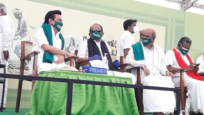 விவசாயிகளுக்கு எதிரான வேளாண் சட்டங்களை ரத்து செய்யக்கோரி டெல்லியில் விவசாயிகள் நடத்திவரும் போராட்டத்திற்கு ஆதரவாக திமுக மற்றும் அதன் கூட்டணிக் கட்சிகள் சென்னை வள்ளுவர் கோட்டத்தில் உண்ணாவிரதம் மேற்கொண்டுள்ளனர். இதற்கு காவல்துறை அனுமதி மறுத்திருந்த நிலையிலும் தடைமீறி இந்த உண்ணாவிரதம் மேற்கொள்ளப்பட்டு வருகிறது. கொரோனா நெருக்கடிக்கு மத்தியிலும் விவசாயிகள் தங்கள் வாழ்வாதாரத்தை பாதுகாக்கும் நோக்கில் மத்திய அரசு கொண்டுவந்துள்ள வேளாண் சட்டங்களுக்கு எதிராக தொடர் முற்றுகைப் போராட்டத்தில் ஈடுபட்டுள்ளனர். மத்திய அரசு சட்டத்தை திரும்பப் பெறும் வரை தங்களது போராட்டம் முடிவுறாது எனவும் அவர்கள் தீர்க்கமாக இருந்து வருகின்றனர்.