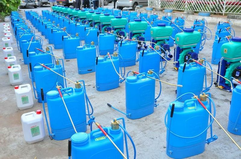 இந்நிலையில் இன்று சென்னை டிஎம்எஸ் வளாகத்தில் மக்கள் நல்வாழ்வு மற்றும் குடும்ப நலத்துறை அமைச்சர் விஜய பாஸ்கர் அவர்கள் பொது சுகாதாரம் மற்றும் நோய் தடுப்பு துறை மூலம் தமிழகம் முழுவதும் அமைந்துள்ள அரசு மருத்துவமனைகள் மற்றும் ஆரம்ப சுகாதார நிலையங்களுக்கு கிருமிநாசினிகள் லைசால் அண்ட் ஹைட்ரோ குளோரைட் கிருமி நாசினி தெளிக்க 5000 எண்ணிக்கையிலான Knapsack – Sprayer மற்றும் 1,500 எண்ணிக்கையிலான Power - Sprayer கருவிகள் என சுமார் 43 சுகாதார மாவட்டங்களுக்கும் வழங்கியுள்ளார், அது மட்டுமின்றி தமிழகம் முழுவதும் கிருமிநாசினி தெளிப்பதற்கு உள்ளாட்சித் துறை மூலம் சுமார் 6500 பணியாளர்கள் நியமிக்கப்பட்டுள்ளனர் எனவும் தெரிவித்துள்ளார்