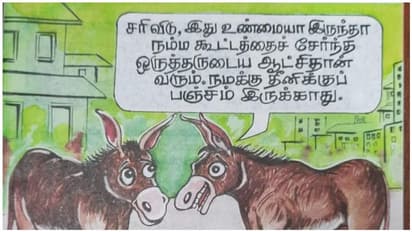 இந்நிலையில், தற்போது துக்ளக் பத்திரிகையில் வெளிவந்துள்ள கார்டூன் பரபரப்பை ஏற்படுத்தி இருக்கிறது. 2 கழுதைகள் பேசி கொள்கின்றன. ஒரு நாளிதழில் முதல் பக்கச் செய்தியாக "ரஜினி கட்சி தொடங்குவது சந்தேகமே" என்று அச்சிடப்பட்டுள்ளது. அந்த தலைப்பை பார்த்துவிட்டு, ஒரு கழுதை இன்னொரு கழுதையுடம் "சரிவிடு.. இது உண்மையா இருந்தா நம்ம கூட்டத்தை சேர்ந்த ஒருத்தருடைய ஆட்சிதான் வரும்.. நமக்கு தீனிக்கு பஞ்சம் இருக்காது" என்று சொல்கிறது.