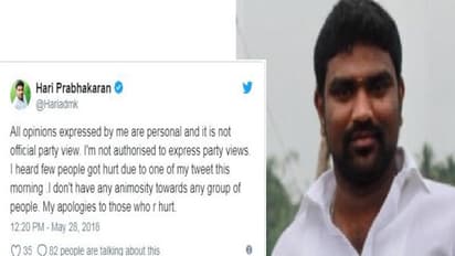 இதனால் அந்த ட்வீட்டை நீக்கிய அவர் பின்வருமாறு ஒரு பதிவை இப்போது வெளியிட்டிருக்கிறார்” டிவிட்டரில் நான் வெளியிட்டது எனது சொந்த கருத்து மட்டுமே. அதற்கும் கட்சிக்கும் எந்த தொடர்பும் இல்லை. கட்சியின் கருத்துக்களை கூறும் உரிமையும் எனக்கு இல்லை. இன்று காலையில் நான் வெளியிட்டிருந்த ட்வீட்டால் சிலரின் மனம் புண்பட்டதாக அறிந்தேன்.