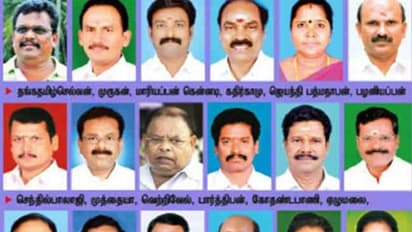 தங்க தமிழ்ச்செல்வன் - ஆண்டிபட்டி தொகுதி, ஆர்.முருகன் - அரூர், மாரியப்பன் கென்னடி - மானாமதுரை, கதிர்காமு - பெரியகுளம், ஜெயந்தி பத்மநாபன் - குடியாத்தம், பழனியப்பன் - பாப்பிரெட்டி பட்டி, செந்தில் பாலாஜி - அரவக்குறிச்சி, எஸ். முத்தையா - பரமக்குடி, வெற்றிவேல் - பெரம்பூர், என்.ஜி.பார்த்திபன் - சோளிங்கர், கோதண்டபாணி - திருப்போரூர், ஏழுமலை - பூந்தமல்லி, ரெங்கசாமி - தஞ்சாவூர், தங்கதுரை - நிலக்கோட்டை, ஆர்.பாலசுப்பிரமணி - ஆம்பூர், எஸ்.ஜி.சுப்ரமணியன் - சாத்தூர், ஆர்.சுந்தரராஜ் - ஒட்டப்பிடாரம், கே.உமா மகேஸ்வரி - விளாத்திகுளம் ஆகிய 18 எம்.எல்.ஏ.க்கள் சபாநாயகரால் தகுதி நீக்கம் செய்யப்பட்டனர்.