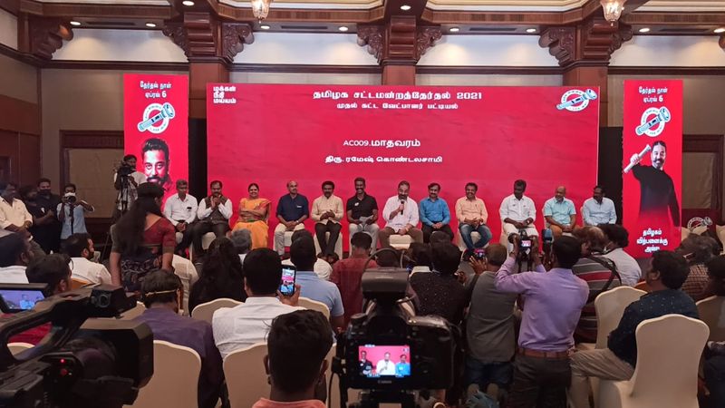 அதன் படி சினேகன் விருகம்பாக்கம் தொகுதியிலும் முன்னாள் ஜனாதிபதி அப்துல் கலாமிடம் பணியாற்றிய பொன்ராஜ் அண்ணா நகர் தொகுதியிலும் போட்டியிடுகின்றனர்.பத்மபிரியா - மதுரவாயல், ரமேஷ் கொண்டலசாமி - மாதவரம், பாசில் - ஆர்.கே.நகர், பொன்னுசாமி - பெரம்பூர் சந்தோஷ்பாபு - வில்லிவாக்கம், பிரியதர்ஷினி - எழும்பூர், சிநேகா மோகன்தாஸ் - சைதாப்பேட்டை, செந்தில் ஆறுமுகம் - பல்லாவரம் சிவ இளங்கோ - தாம்பரம், லாவண்யா - திருப்போரூர், முருகானந்தம் - திருவெறும்பூர், உமா தேவி - அருப்புக்கோட்டை உள்ளிட்டோர் அடங்கிய பட்டியல் வெளியிடப்பட்டுள்ளது.