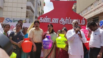 இந்த நிலையில், இன்றும் தண்ணீர் பிரச்னை பல ஏரியாக்களில் இருப்பதால்,கடும் குடிநீர் பிரச்சினையை அதிமுக அரசு கண்டுகொள்ளவில்லை என சென்னை கிழக்கு மாவட்ட திமுக மற்றும் மாவட்ட மகளிரணி சார்பில் கண்டன ஆர்ப்பாட்டம் நடைபெற்றது. "கழக அரசே செய்லபடு.. தாகத்திற்கு நீர் கொடு" என்ற வாசகம் அடங்கிய காலி குடங்களை வைத்துக்கொண்டு ஆர்ப்பாட்டம் செய்தனர்.
