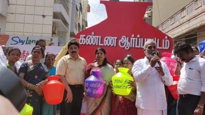 இதைத் தொடர்ந்து செய்தியாளர்களை சந்தித்த கனிமொழி, "தற்போதைய நிலவரப்படி தமிழகத்தின் குறியீடாக காலிக்குடங்களே இருக்கிறது. ஆண்களும், பெண்களும் ஒரு வாய் தண்ணீருக்காக காத்துக்கிடக்கின்றனர். தமிழகத்தின் அவல நிலை உலகெங்கும் உற்றுநோக்கி பார்க்கப்பட்டு வருகிறது. ஆனால், எடப்பாடியின் அ.தி.மு.க அரசோ தண்ணீர் பஞ்சமே இல்லையென நாடகமாடி வருகிறது." என்றார்.
