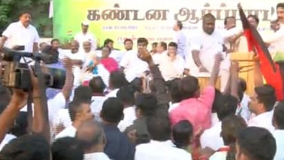 போராட்டத்துக்கு தமிழக காங்கிரஸ் கட்சியின தலைவர் திருநாவுக்கரசர் தலைமை தாங்கி நடத்தவிருந்தார். அவர் வருவதற்கு முன்பாக தென் சென்னை மாவட்ட காங்கிரஸ் தலைவர் கராத்தே தியாகராஜன் பேசினார்.