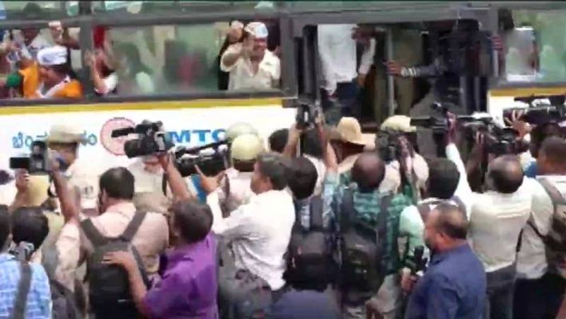 மேலும் ஆம் ஆத்மி கட்சி சார்பில் காண்டிராக்டர் சந்தோஷ் உயிரிழப்பு விவகாரத்தில் அமைச்சர் கே.எஸ். ஈஸ்வரப்பா உடனடியாக பதவி விலக வேண்டும் என பெங்களூரில் போராட்டம் நடத்தப்பட்டது. போராட்டத்தில் கலந்து கொண்டவர்களை கர்நாடக போலீசார் கைது செய்துள்ளனர்.