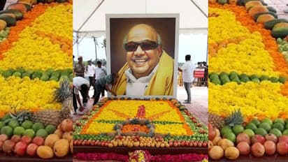 திமுக தலைவர் கருணாநிதி உடல் அடக்கம் செய்யப்பட்ட இடத்தில் திமுக தொண்டர்கள் அலை அலையாய் வந்து கண்ணீர் அஞ்சலி செலுத்தி வருகின்றனர். அவரது சமாதியில் பழங்கள் மற்றும் பூக்களால் உதயசூரியன் போல் அலங்கறிக்கப்பட்டது. இது பார்ப்போரை வியப்படைய செய்துள்ளது. முன்னாள் முதல்வர் தி.மு.க. தலைவருமான கருணாநிதி உடல்நலக் குறைவு காரணமாக கடந்த 7-ம் தேதி உயிரிழந்தார். அவரது உடல் ராணுவ மரியாதையுடன் மெரினா அண்ணா நினைவிடம் அருகே நல்லடக்கம் செய்யப்பட்டது. கருணாநிதி உடல் அடக்கம் செய்யப்பட்ட இடத்தை சுற்றிலும் தடுப்புகள் வைக்கப்பட்டு உள்ளன. பெரிய அளவில் கருணாநிதி உருவப்படம் வைக்கப்பட்டுள்ளது.