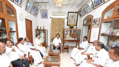 அப்போது அவர்களை திமுக செயல் தலைவர் மு.க.ஸ்டாலின், டி.ஆர்.பாலு, ஆ.ராசா போன்றோர் கருணாநிதியின் அறைக்கு அழைத்துச் சென்றனர். அவரிடம் ஓபிஎஸ் உள்ளிட்ட அமைச்சர்கள் நலம் விசாரித்தனர்.