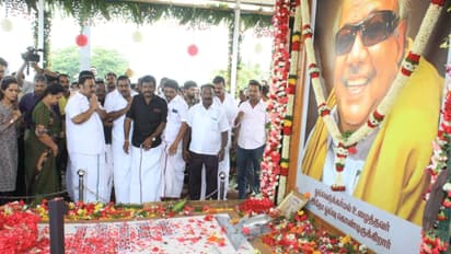 முன்னாள் முதலமைச்சரும் தி.மு.க. தலைவருமான கருணாநிதியின் முதலாம் ஆண்டு நினைவு தினம் இன்று அனுசரிக்கப்பட்டு வருகிறது. அவரது உடலுக்கு மூத்த மகனும், முன்னாள் மத்திய அமைச்சரான மு.க.அழகிரி தனது குடும்பத்தினருடன் கலைஞர் நினைவிடத்திற்கு வந்து மலர் தூவி மரியாதை செலுத்தினார்.