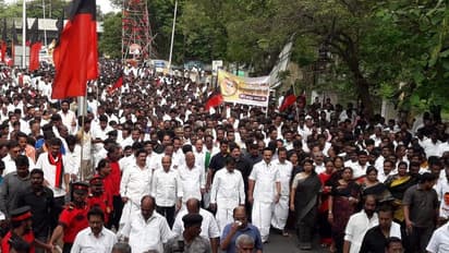 இந்த ஊர்வலரத்துக்கு திமுக தலைவர் முக ஸ்டாலின் தலைமை வகித்தார். இதில் திமுக பொருளாளர் துரைமுருகன், திமுக அமைப்பு செயலாளர் ஆர் எஸ் பாரதி, தூத்துக்குடி எம்பி கனிமொழி, நீலகிரி எம்பி ஆ ராசா உள்ளிட்டோர் கலந்து கொண்டுள்ளனர். இந்த அமைதி ஊர்வலத்தில் மாநிலம் முழுவதும் இருந்து கட்சி நிர்வாகிகள், தொண்டர்கள் கலந்து கொண்டுள்ளனர். கருணாநிதி நினைவிடத்தில் மலர் தூவி மவுன அஞ்சலி செலுத்தினர்..