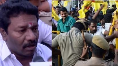 எடப்பாடி பழனிச்சாமி அடித்து வெளுத்து விடுவேன்... டிசி அரவிந்தன் டவுசரை கழட்டி விடுவேன் வன்னியர்கள் மிகவும் குறைவு, ராமதாஸ் பொய் சொல்கிறார், நாடார் பிராமின் மட்டுமே பத்திரிக்கை நடத்துகிறான், எடப்படிக்கு முதலமைச்சர் பதவி நாங்கள் போட்ட பிச்சை, இப்படியெல்லாம் வாய்க்கு வந்தது உளறி, எசக்கு பிசக்காக மாட்டிக் கொண்டு சிறையில் கம்பி எண்ணிக் கொண்டிருக்கிறார். திருவாடானை MLA கருணாஸ்.