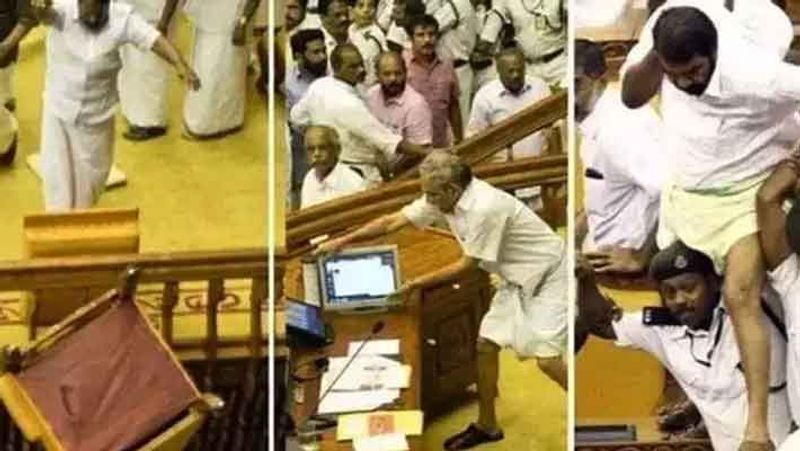 கேரளாவில் கடந்த 2015ம் ஆண்டு காங்கிரஸ் ஆட்சியின் போது நிதியமைச்சராக இருந்த கே.எம்.மாணி சட்டப்பேரவையில் நிதிநிலை அறிக்கையை தாக்கல் செய்தார். அப்போது மாநிலத்தில் மதுபான பாா்களை அனுமதிக்க லஞ்சம் வாங்கியதாக குற்றச்சாட்டுக்கு உள்ளாகியுள்ள நிதி அமைச்சர் கே.எம்.மாணி பட்ஜெட் தாக்கல் செய்யக் கூடாது என்று எதிர்க்கட்சிகள் போர்க்கொடி உயர்த்தினர். இதனால், சட்டப்பேரவையில் கடும் அமளி ஏற்பட்டு தற்போது ஆளுங்கட்சியாக இருக்கக்கூடிய மார்க்சிஸ்ட் கம்யூனிஸ்ட் கட்சியின் சட்டமன்ற உறுப்பினர்கள் அங்கிருந்த மைக்குகள், நாற்காலிகள் ஆகியவற்றை உடைத்து சேதப்படுத்தினர். இந்த சம்பவம் பெரும் பரபரப்பை ஏற்படுத்தியது.