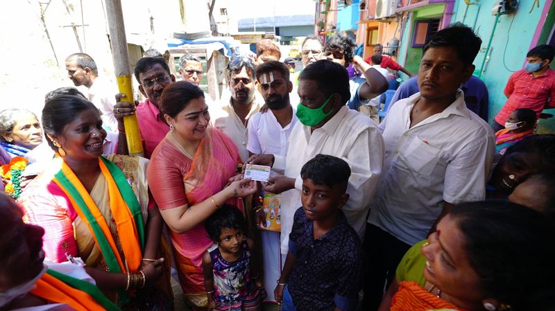 இந்நிலையில் வேட்பாளர் குஷ்பு தீவிர வாக்கு சேகரிப்பில் ஈடுபட்டு வருகிறார். ஆயிரம் விளக்கு தொகுதிக்குட்பட்ட வைகுண்டபுரம், கக்கன் காலணி, காமராஜ் நகர் உள்ளிட்ட பகுதிகளில் வாக்கு சேகரிப்பில் ஈடுபட்ட அவருக்கு மக்கள் உற்சாக வரவேற்பு அளித்தனர். அப்போது செய்தியாளர்களிடம் பேசிய அவர், இந்த பகுதி மக்களுக்கு பிரதான கோரிக்கையாக எதுவும் இல்லை சிறு சிறு கோரிக்கைகள்தான் உள்ளது. குறிப்பாக பட்டா வேண்டும் என்ற கோரிக்கை உள்ளது. அதனை நிச்சயம் வாங்கி தருவோம் என வாக்குறுதியளித்தார்.