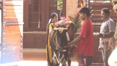 வருமான வரித்துறையினர் இன்று சென்னை அடையாறில் உள்ள டிடிவி தினகரன் வீட்டில் சோதனை நடத்தினர். வீட்டின் முன்பு பசுமாட்டை நிறுத்தி இந்த பூஜையை தினகரன் நடத்தினார். கோ பூஜையின்போது பசு, கன்றுக்கு தினகரன் மற்றும் மனைவி அனுராதா ஆகியோர் வாழைப்பழங்களை அளித்தனர்.