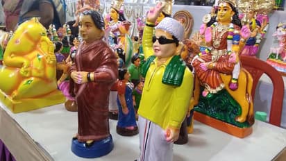 தமிழ்நாடு மகளிர் மேம்பாடு நிறுவனம் சார்பில் வைக்கப்பட்டுள்ள கொலு கண்காட்சியில் வைக்கப்பட்டிருந்த எம்.ஜி.ஆர். மற்றும் ஜெயலலிதா பொம்மைகளை தொட்டுக்கும்பிட்டு அமைச்சர் பெஞ்சமின் வாங்கி சென்றார். நாளை முதல் நவராத்திரி விழா தொடங்குகிறது. கோயில்கள், வீடுகளில் நவராத்திரி கொலு வழிபாடுகள் நாளை முதல் நடத்தப்படுகிறது. இதற்காக கொலு பொம்மைகள் தமிழகம் முழுவதும் விற்பனை செய்யப்பட்டு வருகின்றன.