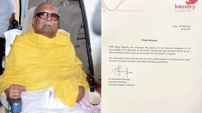 முன்னாள் முதல்வரும் திமுக தலைவருமான கருணாநிதி காவேரி மருத்துவமனையில் காலமானார். 95 வயதான கலைஞர் கருணாநிதி இன்று மாலை 6.10 மணிக்கு காலமானார். 25-ம் தேதி உடல்நிலை சரியில்லாமல் கோபாலபுர இல்லத்தில் தீவிர சிகிச்சை அளிக்கப்பட்டு வந்தது. ஆனால் ரத்த அழுத்தம் காரணமாக 27-ம் தேதி அதிகாலை 1.30 மணி அளவில் காவேரி மருத்துவமனையில் தீவிர சிகிச்சை பிரிவில் அனுமதிக்கப்பட்டு சிகிச்சை அளிக்கப்பட்டு வந்தது. 11 நாட்கள் மருத்துவ சிகிச்சை பெற்று வந்த நிலையில் திமுக தலைவர் கருணாநிதி உயிரிழந்தார்.