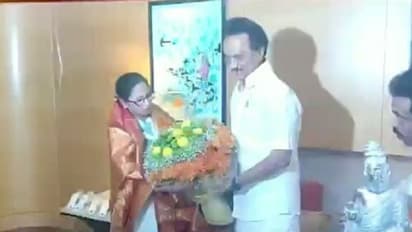 இந்த விழாவில் பங்கேற்பதற்காக மேற்கு வங்க முதலமைச்சர் மம்தா பானர்ஜி சென்னை வந்தார். அவரை வரவேற்று பூங்கொத்து கொடுத்த திமுக தலைவர் ஸ்டாலின் அவருக்கு திருவள்ளுவர் கிலையை பரிசாக் வழங்கினார்.