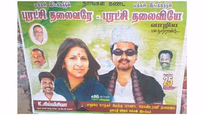இந்நிலையில், நடிகர் விஜயையை எம்.ஜி.ஆர். போலவும், விஜயின் மனைவி சங்கீதாவை ஜெயலலிதா போலவும் சித்தரித்து, மதுரையில் விஜய் ரசிகர்கள் ஒட்டியுள்ள போஸ்டர்களால் பரபரப்பு ஏற்பட்டுள்ளது. விஜய்-சங்கீதா ஜோடியின் திருமண நாளை கொண்டாடும் விதமாக, இந்த போஸ்டரை அவரது ரசிகர்கள் ஒட்டியுள்ளனர். அரசியலுக்கு விஜய்யை அழைக்கும் வகையில், அவரது ரசிகர்கள் அவ்வப்போது இதுபோன்று போஸ்டர்களை ஒட்டி வருவது வழக்கமான ஒன்று. ஆனால், விஜய்யை எம்.ஜி.ஆர். போலவும், சங்கீதாவை ஜெயலலிதா போலவும் சித்தரித்து சுவரொட்டிகள் ஒட்டப்பட்டிருப்பது, அரசியல் பிரமுகர்கள் மத்தியில் பெரும் பரபரப்பை ஏற்படுத்தியுள்ளது.