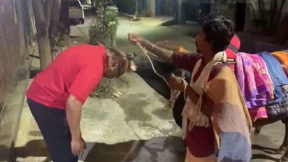 சென்னை பட்டினப்பாக்கத்தில் அமைச்சர் ஜெயக்குமாரின் வீடு அமைந்நதுள்ளது. தினமும் காலையில் நடைபயிற்சி செல்வதை வழக்கமாக கொண்டுள்ளார். இந்நிலையில், வழக்கம் போல நடைபயிற்சி மேற்கொண்டிருந்த போது அவரது வீடு அமைந்துள்ள வீதியில் பூம் பூம் மாட்டுக்காரர் சென்று கொண்டிருந்தார். இதைக் கண்ட அமைச்சர் ஜெயக்குமார் அருகில் சென்று பூம் பூம் மாட்டிடம் ஆசி பெற்றார்.