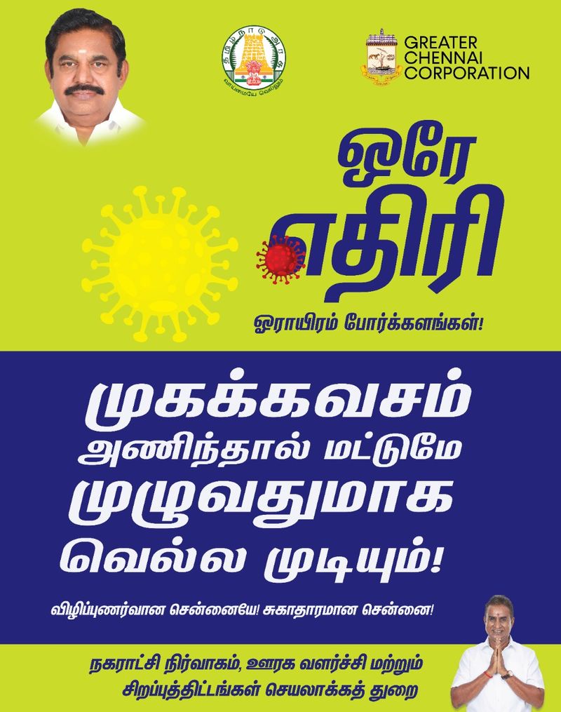 அரசின் முயற்சிகள் நம் நன்மைக்காவே என்று உணர்ந்து பொதுமக்கள் தங்கள் பாதுகாப்பையும், தங்களைச் சுற்றி இருப்பவர்களின் பாதுகாப்பையும் உறுதி செய்யும் வண்ணம் நடந்து கொள்ள வேண்டும். கொரோனாவை முழுவதுமாக வெல்ல முகக்கவசம் அணிவோம்!முகக்கவசம் அணியாதவரிடமிருந்து விலகி இருப்போம்! சமூக விலகலை கடைபிடிப்போம்! என்கிற உறுதியை அனைவரும் எடுப்போம், பாதுகாப்பாக, ஆரோக்கியமாக வாழ்வோம். போர்க்களங்கள் ஓராயிரமாயினும் இன்றைக்கு உலகமெங்கும் நம் அனைவருக்கும் ஒரே எதிரி,கொரோனா என்கிற கொடிய நோய்த்தொற்று!விழித்தெழுவோம்! விழிப்புணர்வால் வெல்வோம்! என அவர் தெரிவித்துள்ளார்.