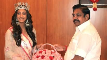 மிஸ் இந்தியாவாக தேர்ந்தெடுக்கப்பட்ட சென்னை மாணவி அனுக்ரீத்தி வாஸ், இன்று தமிழக முதலமைச்சர் எடப்பாடி பழனிசாமியை சந்தித்து வாழ்த்துப்