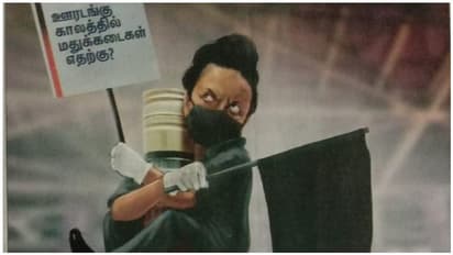 இதனை வலியுறுத்தும் விதமாக பிரபல தமிழ் வார இதழான விகடனில் ஒரு கார்ட்டூன் வெளியாகி இருக்கிறது. அதில், மது பாட்டில் மீது ஏறி அமர்ந்து கொண்டு முக. ஸ்டாலின், கருப்பு கொடி பிடித்தபடி, ‘ ஊரடங்கு காலத்தில் மதுக்கடைகள் எதற்கு?’என கார்ட்டூன் வெளியிடப்பட்டுள்ளது. அதாவது மது பாட்டில் மீது அமர்ந்து இறுக்கமாக கட்டிப்பிடித்துக் கொண்டு, அதனை விட்டுக் கொடுக்காமல், மதுக்கடைகளுக்கு எதிராக அவர் போராட்டம் நடத்தி வருகிறார் என்பதை உணர்த்தும் வகையில் அந்த கார்ட்டூன் கருத்தை வெளிப்படுத்துகிறது.