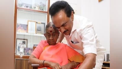 அப்போது, தாயாளம்மாள், ஸ்டாலினின் கன்னத்தைக் கிள்ளி பாசமழை பொழிந்தார்.