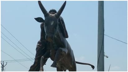 இத்தகைய சிறப்பை போற்றும் விதமாக புதுக்கோட்டை அரசு மகளிர் கலை கல்லூரி அருகே புதுக்கோட்டை மாவட்ட மற்றும் நகராட்சி நிர்வாகத்தின் சார்பில் ரூ.10 லட்சம் மதிப்பில், சீறிப்பாயும் காளையை வீரர் அடக்குவது போன்ற தோற்றத்தில் உலோக சிலை தத்ரூபமாக அமைக்கப்பட்டு உள்ளது.