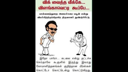 பால்வளத்துறை அமைச்சரை பபூன் என்று விமர்சித்த திமுக தலைவர் மு.க ஸ்டாலினுக்கு அதிமுக அதிகாரப்பூர்வ நாளேடான நமது அம்மா பதிலடி கொடுத்துள்ளது. அதில் " விக் வைத்த வீக்கே, விளாங்காவெட்டி கூப்பே " என்ற தலைப்பில் பதிலடி கொடுக்கப்பட்டுள்ளது. அதில் கூறியிருப்பதாவது: