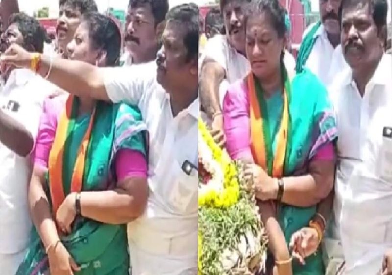அப்போது சசிகலா புஷ்பாவை சுற்றி ஆண்கள் கூட்டம் இருந்த நிலையில் பின்னால் இருந்து ஒரு கை அவரின் முடியை பிடித்து இழுத்துள்ளது. அப்போது அவருக்கு பின்னால் பாஜக மூத்த நிர்வாகியும் பொதுச்செயலாளருமான பொன்.பாலகணபதி சசிகலா புஷ்பாவை இடித்துக்கொண்டு வந்ததாக கூறப்படுகிறது. அதோடு சசிகலா புஷ்பாவின் கையை அவர் பிடிக்க முயன்றதாகவும், கையை வைத்து சசிகலா புஷ்பாவை தொடும்படி சென்றதாகவும் கூறப்படுகிறது. அவரின் கையை சசிகலா புஷ்பா அடுத்தடுத்து தள்ளிவிட்டதாகவும் கூறப்படுகிறது.
