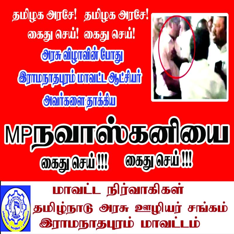 இதனிடையே ராமநாதபுரம் மாவட்ட ஆட்சித் தலைவர் விஷ்ணு சந்திரன் தாக்கப்பட்ட சம்பவத்தை கண்டித்து தமிழ்நாடு வருவாய்த்துறை அலுவலர்கள் சங்க ராமநாதபுரம் மாவட்ட மையம் சார்பில் நாடாளுமன்ற உறுப்பினர் நவாஸ் கனியை கைது செய்யகோரி நாளை மாவட்டம் தழுவிய கண்டன ஆர்ப்பாட்டம் நடைபெறும் என அறிவிக்கப்பட்டுள்ளது.