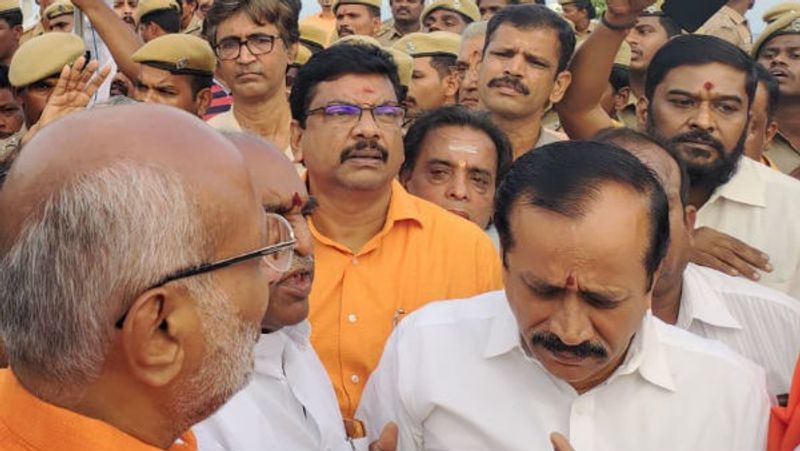இதையடுத்து நெல்லை கண்ணனை கைது செய்ய வலியுறுத்தி, சென்னை மெரினா கடற்கரையில் தர்ணா போராட்டம் நடைபெற்றது. அதில் எச்.ராஜா. சி.பி.ராதாகிருஷ்ணன், இல.கணேசன், பொன்.ராதாகிருஷ்ணன் உள்ளிட்ட பாஜகவின் மூத்த தலைவர்கள் பங்கேற்றனர்.
