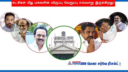 அரசியல் கட்சிகள் குறித்து மக்களின் கருத்து என்ன? என்ற கேள்விக்கு சர்வே ரிசல்ட் சொல்வது தமிழக மக்கள் அரசியல் கட்சிகள் மீது வைத்துள்ள மதிப்பையும் மக்களின் மனநிலையை வெளிப்படையாக காட்டுகிறது. என்ன தான் ரஜினி கமல் போன்ற உச்ச சினிமா நட்சத்திரங்கள் இதுவரை அரசியலில் இல்லை என்றாலும் தற்போது களத்தில் இருக்கும் கட்சிகளுக்கு இணையாக விருப்பு வெறுப்பை மக்கள் காட்டியுள்ளனர்.