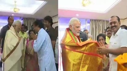 இதற்காக காலையில் சென்னை விமான நிலையத்துக்குச் சென்றிருந்த முதல்வர் எடப்பாடி பழனிசாமி, துணை முதல்வர் ஓ.பன்னீர்செல்வம் ஆகியோரும், பாஜக.,வின் தமிழக தலைவர் தமிழிசை சௌந்தர்ராஜன், ஹெச்.ராஜா உள்ளிட்டோரும் பிரதமரை விமான நிலையத்துக்குச் சென்று வரவேற்றனர்.