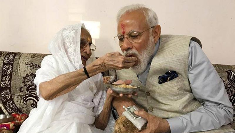 அன்னையின் மீது கொண்டிருந்த அளவற்ற அன்பால், ஏராளமான வேலை பணிகளின் பளு எதிர்வரினும் தாயாரை சென்று சந்தித்து அவர் ஆசி பெற்று வருவதை நம் பாரத பிரதமர் வழக்கமாகக் கொண்டிருந்தார். தன் அன்னையை சக்தியின் வடிவமாக கருதி அன்னையின் திருவடிகளுக்கு என்று அவர் எழுதியிருக்கும் கவிதை தொகுப்பு மிகப் பிரபலம்.