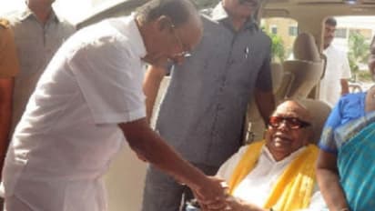 கருணாநிதியுடன் திமுக செயல் தலைவர் மு.க.ஸ்டாலினும் முரசொலி அலுவலகம் வந்தார். அவருடன் துரைமுருகன், எ.வ.வேலு, பொன்முடி உள்ளிட்டோரும் வந்தனர்.