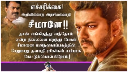இதற்கு அதிமுகவினர் கண்டனம் தெரிவித்து வரும் நிலையில், விஜய் குறித்து பேசிய கருத்துக்கு அவரது ரசிகர்கள் போஸ்டர்கள் மூலம் கண்டனம் தெரிவித்துள்ளனர். ‘எங்கள் தளபதியை பற்றி பேச என்ன தகுதி இருக்கு’, ‘அரசியலில் செல்லாக்காசு சீமான்’, அரசியல் அறிவில்லாத சீமான் உள்ளிட்ட வசனங்கள் போட்டு போஸ்டர்கள் அடித்து ஒட்டியுள்ளனர்.