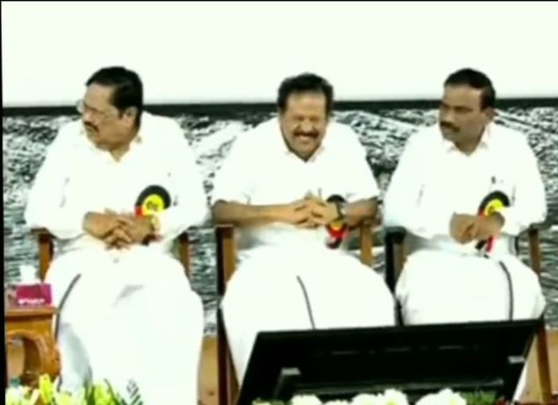 இப்படி உருக்கமாக திமுக தலைவர் மு.க.ஸ்டாலின் பேசிக்கொண்டிருந்த போது உயர்கல்வித்துறை அமைச்சர் பொன்முடி மேடையில் அமர்ந்து கொண்டு சிரித்தது விமர்சனத்திற்குள்ளாக்கியுள்ளது. பாஜகவினர் இந்த காட்சிகளை சுமூக வலைதளத்தில் பரப்பி வருகின்றனர். நீங்கள் என்ன தான் சொன்னாலும் நாங்கள் கேட்கமாட்டோம் என்பதை கூறும் வகையில் பொன்முடியின் செயல்பாடு இருந்ததாக பாஜகவினர் விமர்சித்து வருகின்றனர்.