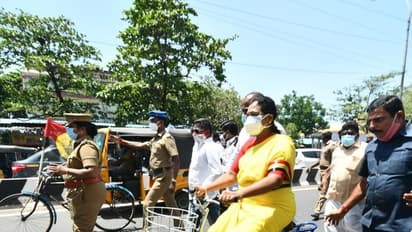 பெட்ரோல், டீசல், சமையல் எரிவாயு விலை உயர்வை கட்டுப்படுத்த வேண்டியது மத்திய மாநில அரசின் கடமை என்றும், மேகதாதுவில் அணைக் கட்ட நினைக்கும் கர்நாடக அரசை தேமுதிக கடுமையாக கண்டிப்பதாக பிரேமலதா விஜயகாந்த் தெரிவித்துள்ளார். பெட்ரோல், டீசல், சமையல் எரிவாயு விலை உயர்வை கண்டித்து தேமுதிக சார்பில் சென்னை மாவட்ட ஆட்சியர் அலுவலகம் முன்பு தேமுதிக பொருளாளர் பிரேமலதா விஜயகாந்த் தலைமையில் ஆர்ப்பாட்டம் நடைபெற்றது. பெட்ரோல், டீசல் விலை உயர்வை கண்டிக்கும் விதமாக பிரேமலதா விஜயகாந்த் சைக்கிளில் வந்து ஆர்பாட்டத்தில் பங்கேற்றார்.