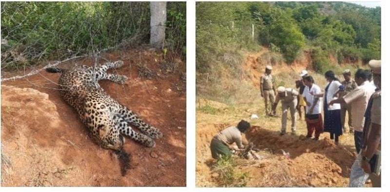 தேனி மாவட்டம் பெரியகுளம் அருகே கோம்பை என்ற வனப்பகுதிக்கு அருகே முன்னாள் முதலமைச்சர் ஓ.பன்னீர்செல்வத்தின் மகனும் தேனி மக்களவை உறுப்பினருமான ப.ரவீந்திரநாத்திற்கு சொந்தமாக நூற்றுக்கணக்கான ஏக்கர் விவசாய நிலங்கள் உள்ளது. அந்த நிலங்களை சுற்றி நான்கு புறமும் சோலார் மின்வேலிகள் அமைக்கப்பட்டுள்ளன. இந்த நிலையில் கடந்த 27ஆம் தேதி சோலார் மின்வேலியில் சிறுத்தை ஒன்று சிக்கி இருந்ததாகவும், அதனை மீட்கும் முயற்சியில் பத்துக்கும் மேற்பட்ட வனத்துறையினர் ஈடுபட்டபோது, வன உதவிப் பாதுகாவலர் மகேந்திரன் என்பவரை தாக்கி விட்டு சிறுத்தை காட்டுக்குள் தப்பி ஓடியதாக தகவல் வெளியானது. இதனையடுத்து அதே இடத்தில் கடந்த 28-ம் தேதி சிறுத்தை ஒன்று உயிரிழந்து விட்டதாகவும் அதனை கால்நடை மருத்துவர்கள் பிரேத பரிசோதனை செய்த பின், உடனடியாக எரிக்கப்பட்டதாகவும் வனத்துறையினர் தெரிவித்தது இருந்தனர்.