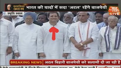அப்போது வாஜ்பாய்க்கு மரியாதை செலுத்தும்விதமாக தலைவர்கள் அனைவரும் எழுந்து நின்று கொண்டிருந்தனர். இதே போல் ராகுல் காந்தியும் தனது இருக்கையில் இருந்து எழுந்து நின்று கொண்டிருந்தார். அவருக்கு அருகே மன்மோகன் சிங் நின்று கொண்டிருந்தார். அனைவரும் சோகமாக நின்று கொண்டிருந்த நேரத்தில், திடீரென ராகுல் காந்தி சிரிக்க ஆரம்பித்தார். இதனால் அவருக்கு அருகே நின்று கொண்டிருந்தவர்கள் அதிர்ச்சி அடைந்தனர்.