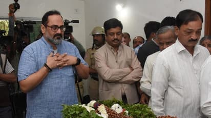 அப்போது ராஜீவ் சந்திரசேகர் எம்.பி. அவரது உடலுக்கு கண்ணீர் மல்க மாலை அணிவித்து அஞ்சலி செலுத்தினார். இதைத் தொடந்து மறைந்த அமைச்சரின் உடலுக்கு இறுதிக் சடங்குகள் நடைபெற்றன.