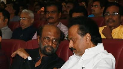 நிகழ்ச்சியில் கலந்துகொண்ட ரஜினிகாந்தும், செயல் தலைவர் ஸ்டாலினும் அருகருகே அமர்ந்திருந்தனர். நினைவேந்தல் நிகழ்ச்சியில் பேசிய ரஜினிகாந்த் அவர்கள் வரிசையாக கேள்விகளை எழுப்பி ஆளும் எடப்பாடி அரசினை விமர்சித்தார். அவர் கூறுகையில், "கருணாநிதி நல்லடக்கம் செய்யும் போது முதல்வர் எடப்பாடி ஏன் மெரினாவிற்கு வரவில்லை? ஜாம்பவான்கள் முட்டுனாங்க! இந்த திஸ் திங்லாம் அவங்களோட முடிஞ்சுபோச்சு! என்று கூறினார். அவர் அவ்வாறு கூறும் பொழுது காமராஜர் அரங்கமே அதிர்ந்தது.