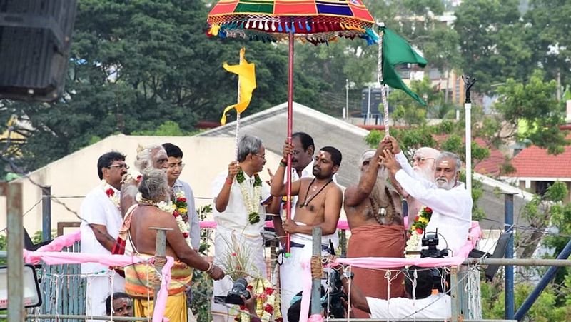 அவர் சார்ந்து இருக்கின்ற ஆளுநராக இருக்கின்ற மாநிலங்களில் இது போன்ற கும்பாபிஷேக நடவடிக்கையை முன்னெடுத்தால் இது போன்ற கேள்விகளை கேட்பதற்கு தகுதி உடையவர்களாக நினைக்கலாம். போகிற போக்கில் ஏதாவது சிண்டு முடிஞ்சு வைக்கும் வேலையை புதுச்சேரியிலும் தெலுங்கானாவிலும் வைத்துக் கொள்ள கேட்டு கொள்கிறேன் என்று கூறினார். அனைத்து ஜாதியினரும் அர்ச்சகராகலாம் திட்டத்தின் மூலம் பயிற்சி பெற்று கோயிலுக்கு சென்று பணியை செய்யும் போது எந்தவித பிரச்சனைக்கு அவர்கள் உள்ளானாலும் துறை ரீதியிலான நடவடிக்கை எடுக்கப்படும். என் மண், என் மக்கள் ஈடுபடவில்லை அதற்காக ஏதாவது பிரச்சனையை பாஜக கையில் எடுக்கிறார்கள். சமத்துவத்தைப் பற்றி திமுக தொடர்ந்து பேசும். சனாதனத்தை பற்றி பேச அனைத்து அமைச்சர்களுக்கும் உரிமை உண்டு. சமாதானம் குறித்தும் சமத்துவம் குறித்தும் தொடர்ந்து பேசுவோம்.